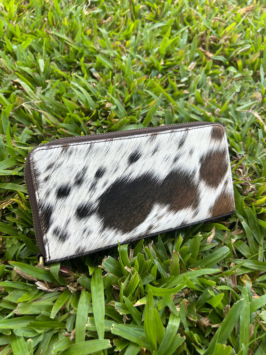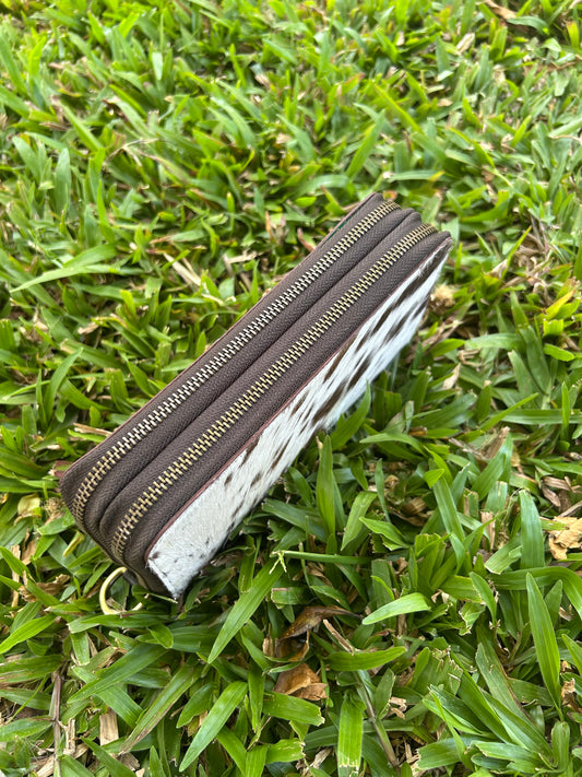 Dark Brown Leather Cowhide Double Zipper Purse 7