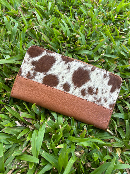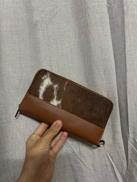 Dark Brown Leather Cowhide Double Zipper Purse 7