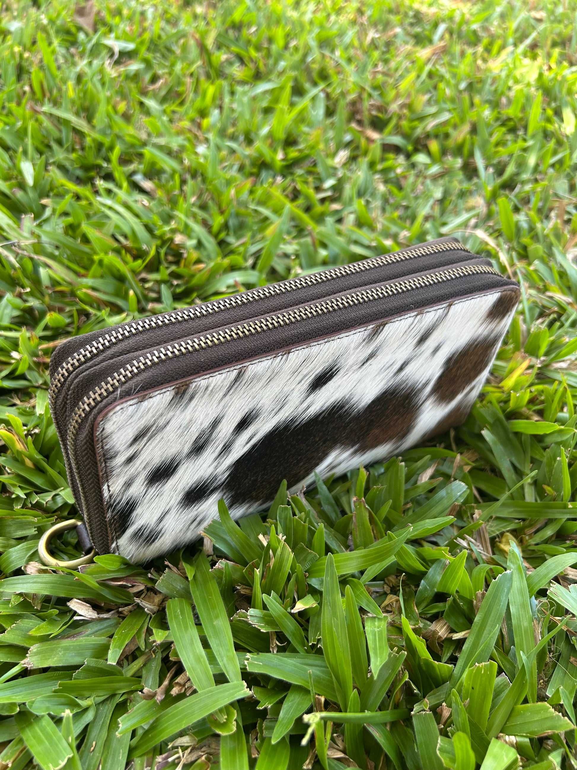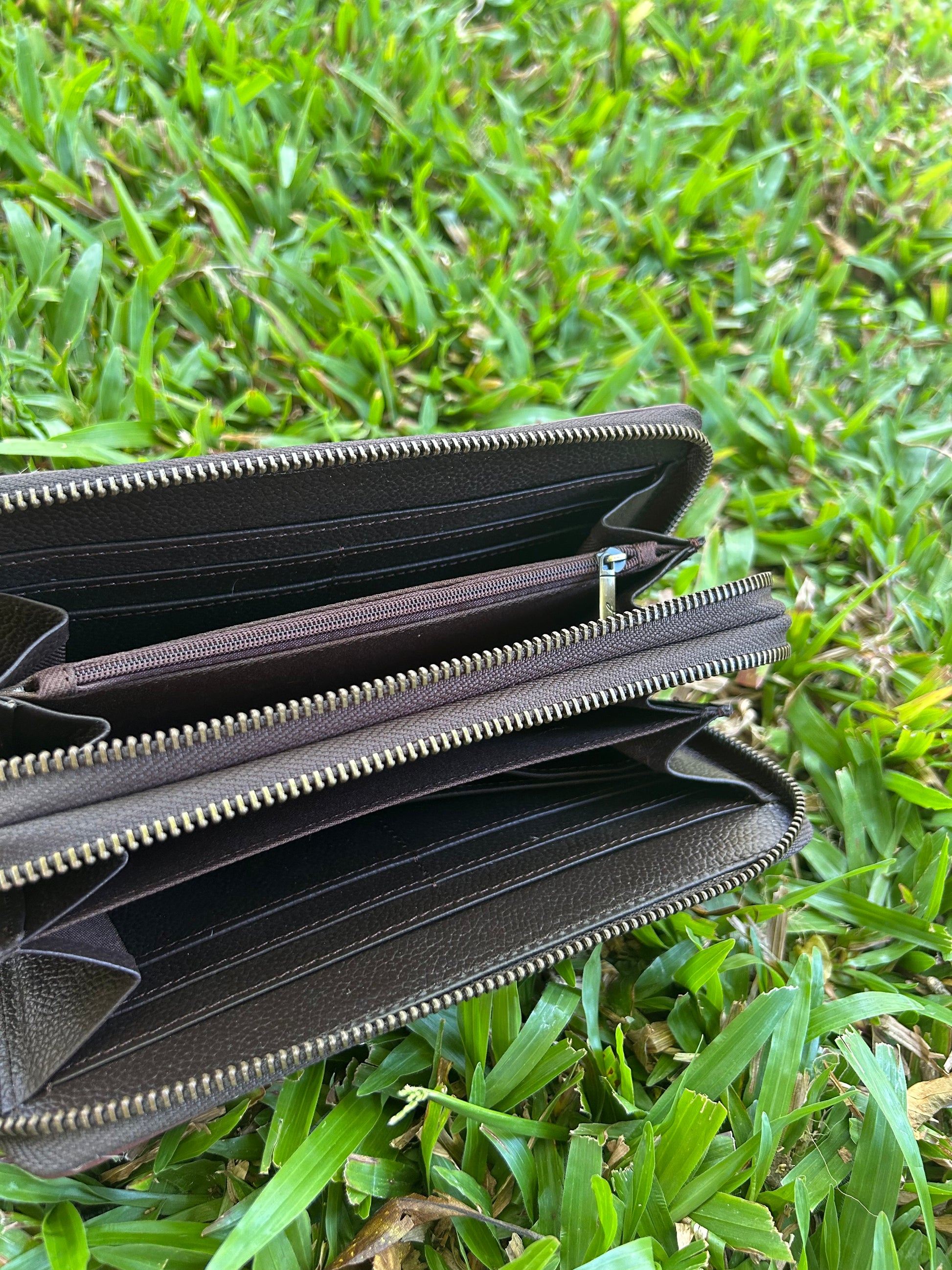 Dark Brown Leather Cowhide Double Zipper Purse 7