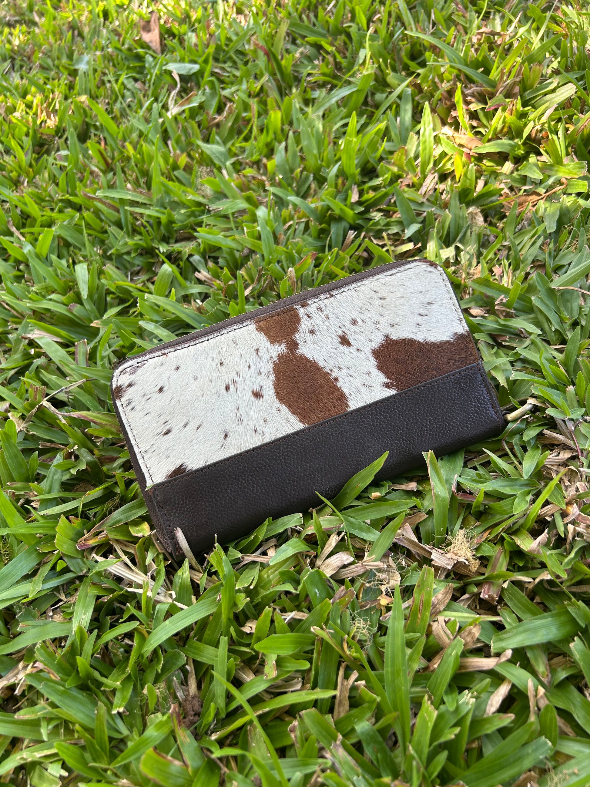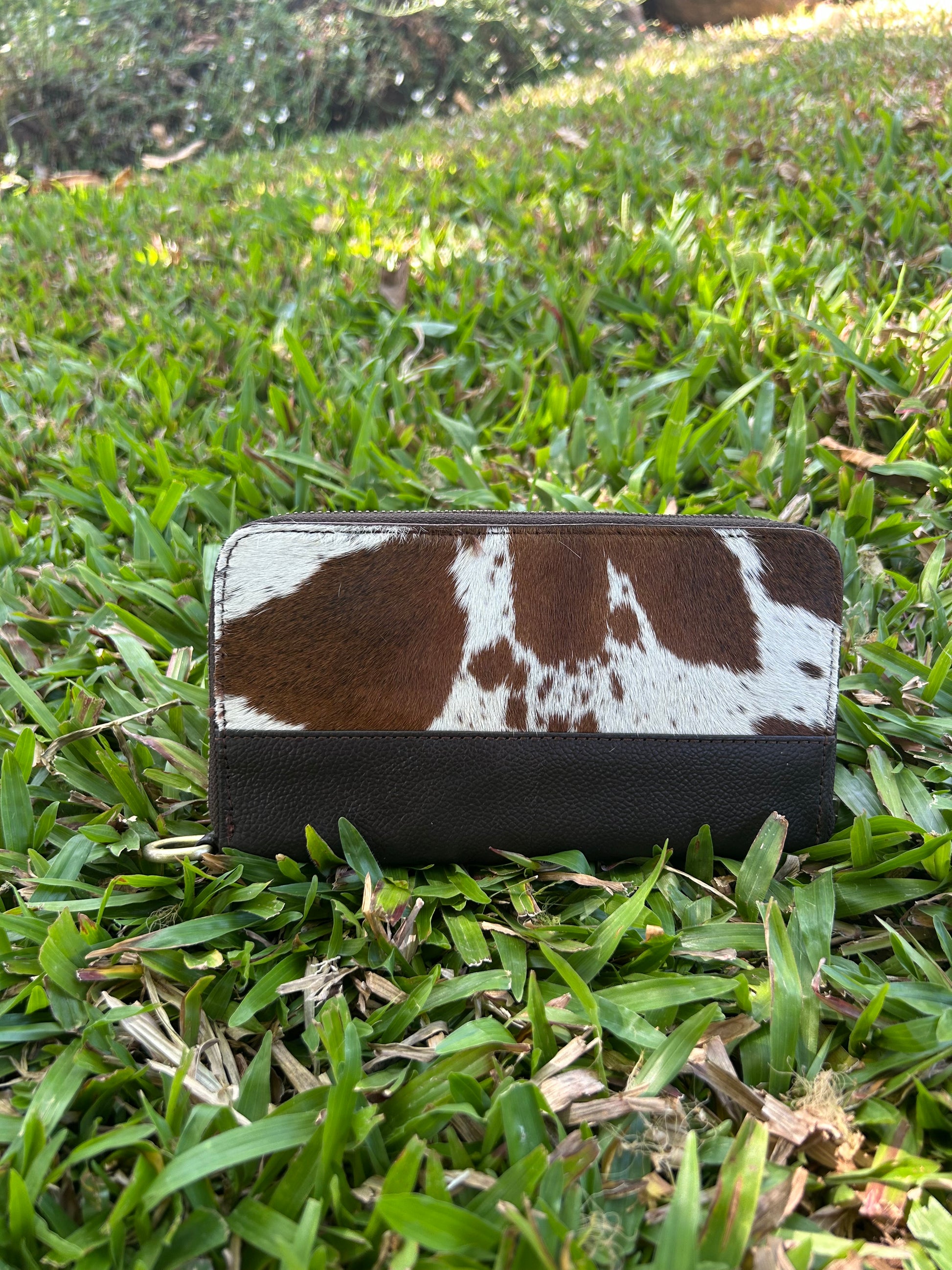Dark Brown Leather Single Zipper Purse with wrist strap 9