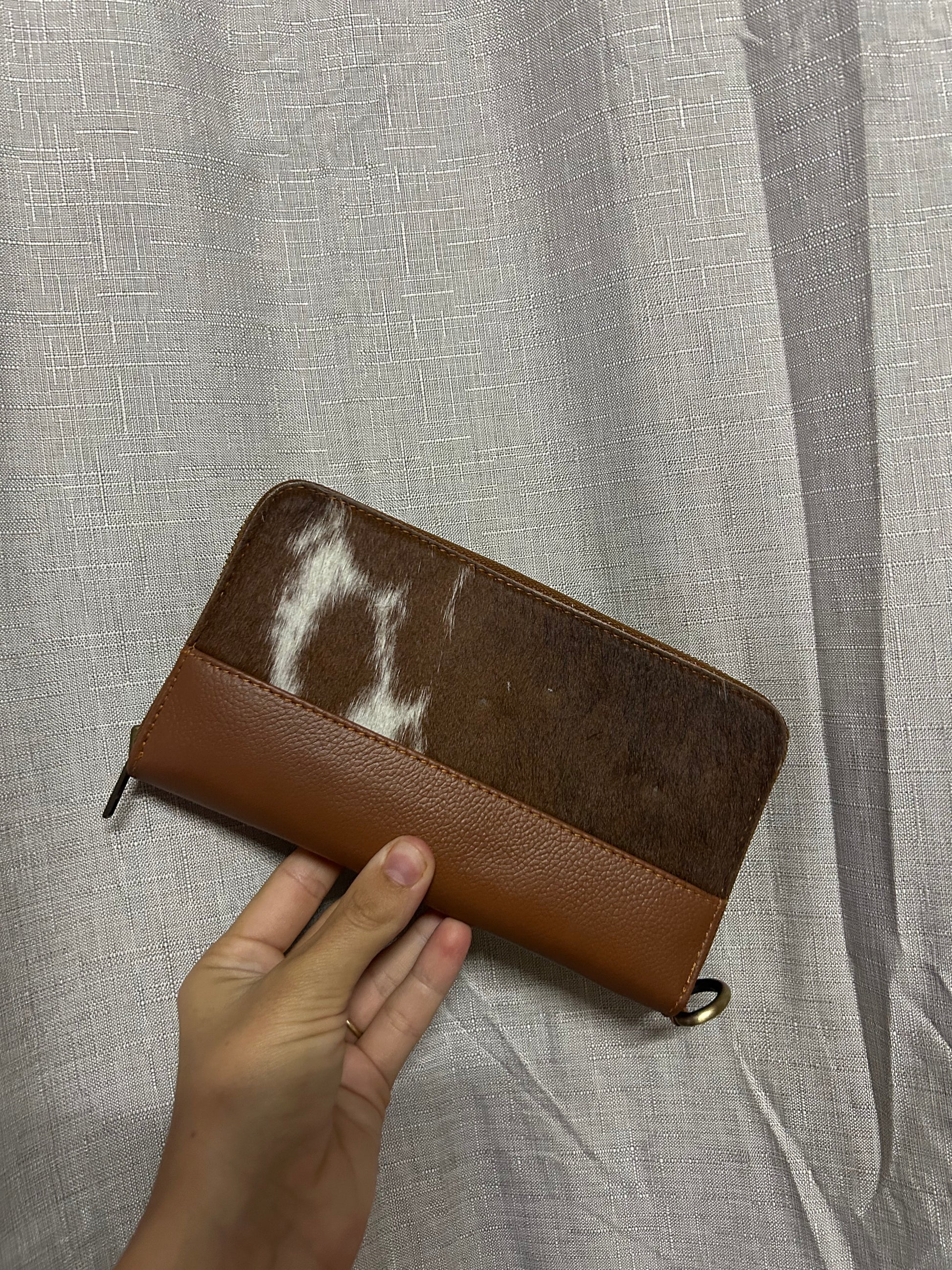 Tan Leather Cowhide Single Zipper Purse with Wrist Strap 10
